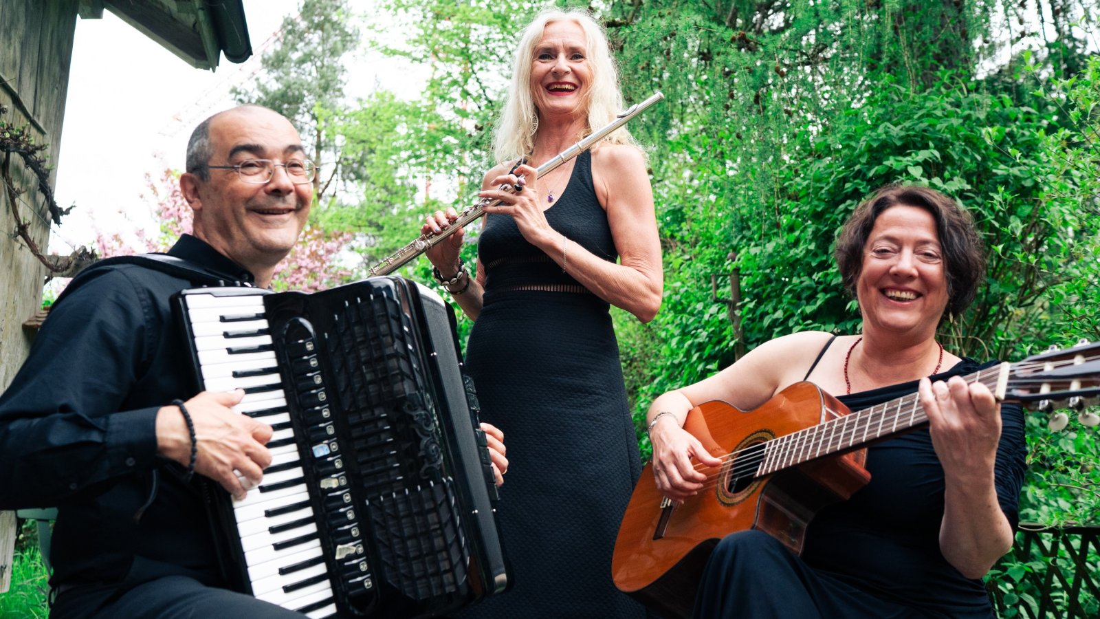 Verbunden durch ihre Liebe für die südamerikanische und spanische Musik, finden Raffaela Bieri (Gitarre), Erika Lafosse (Querflöte) und Paolo D’Angelo (Akkordeon) zusammen, um sich dem wundervollen Gitarrenkonzert von Joaquin Rodrigo, «Concierto de Aranjuez» anzunehmen. Es verbindet die drei Musiker:innen aber nicht nur die Leidenschaft für brasilianische Choros, die andinische Folklore und die argentinischen Milongas und Tango Nuevos, sondern auch ihre gemeinsame, langjährige Lehrtätigkeit an der Musikschule Prova, in Winterthur.