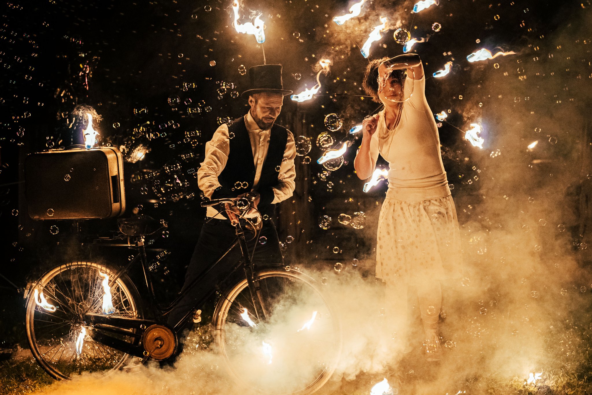 Lisa Bögli und Andreas Schwarzer vermögen auch in diesem Winter mit ihrer unverkennbaren, poetischen, sinnlichen und humorvollen Art einen Tanz mit dem Feuer einzugehen und Grosses und ganz Kleines zu wagen. Im Lauten und im Stillen enthüllen sie kombiniert mit Seifenblasen ein weiteres kleines, bescheidenes Meisterwerk.