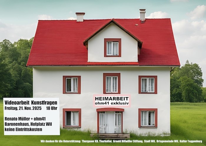 Im Dokumentarfilm von Renato Müller werden Kunstschaffende von ohm41 zu ihren Werken und zu ihren allgemeinen Lebenssituationen Stellung nehmen. Diverse Fragen zu ihrer Kunst und Kunst im Allgemeinen werden thematisiert. Der Film wird als Premiere im Baronenhaus in Wil gezeigt.