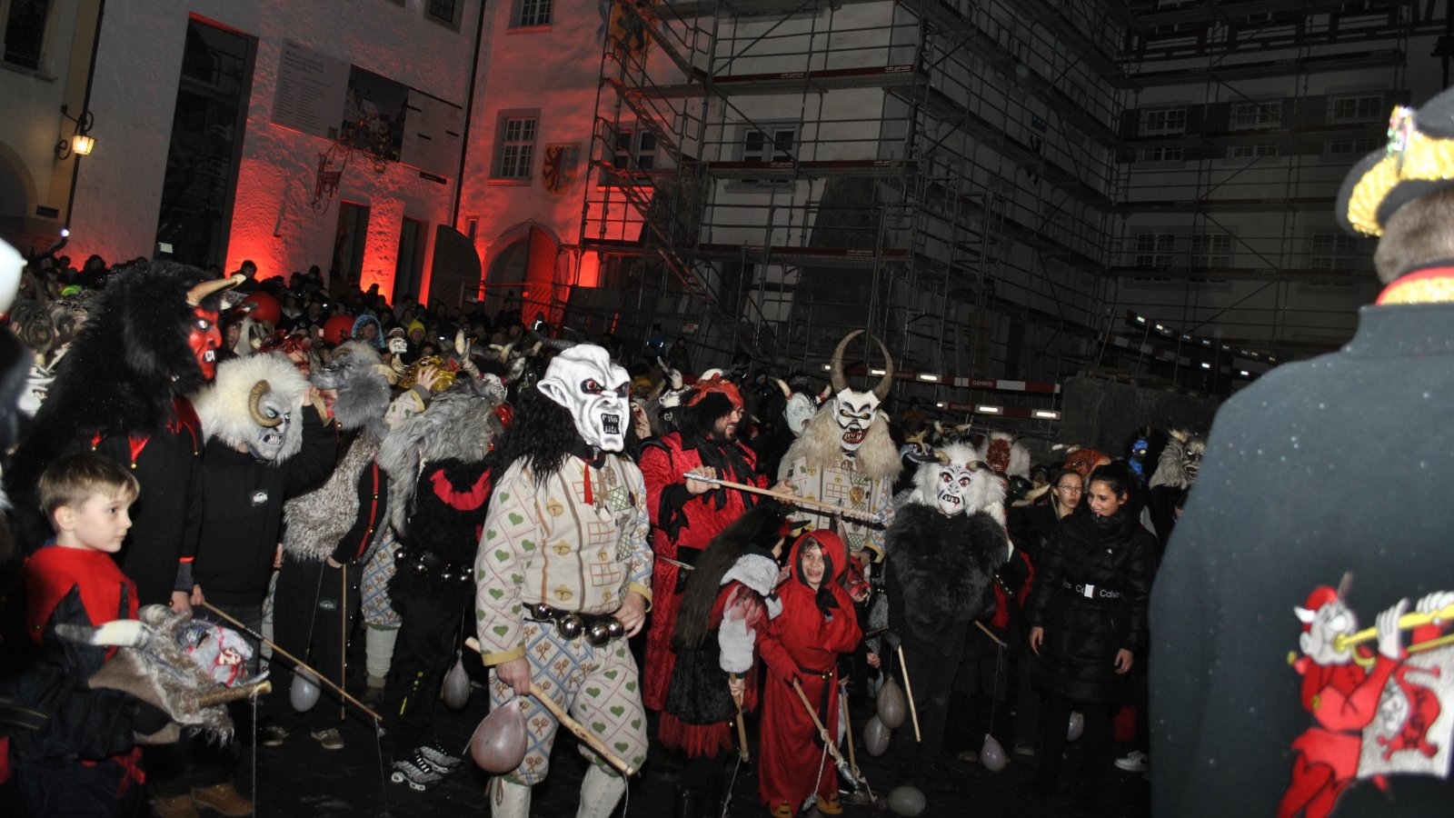 Menschen, gross und klein und meist verkleidet, versammeln sich auf dem Hofplatz. Alle warten gespannt auf den Auszug der über 200 Wiler Tüüfel, gefolgt vom Prinzenpaar und Hofnarr aus dem Hoftor des Hofs zu Wil. Mit dem Verlesen der Bullen durch den Herold ist die Wiler Fastnacht offiziell eröffnet.