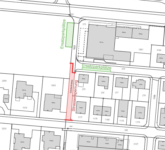 Während der Bauzeit sind die Parkplätze entlang der Schillerstrasse aufgehoben. Als Ersatz stehen Parkmöglichkeiten an der Pestalozzistrasse sowie auf dem Kiesplatz an der Schillerstrasse zur Verfügung.