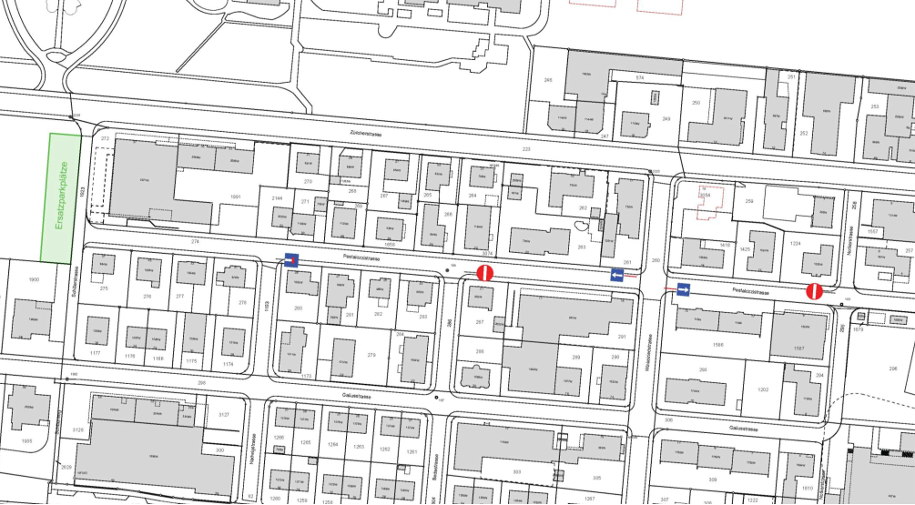 Die Zufahrt zu den Liegenschaften bleibt, soweit möglich, gewährleistet. Sollte dies vorübergehend nicht möglich sein, stehen Ersatzparkplätze an der Schillerstrasse zur Verfügung.