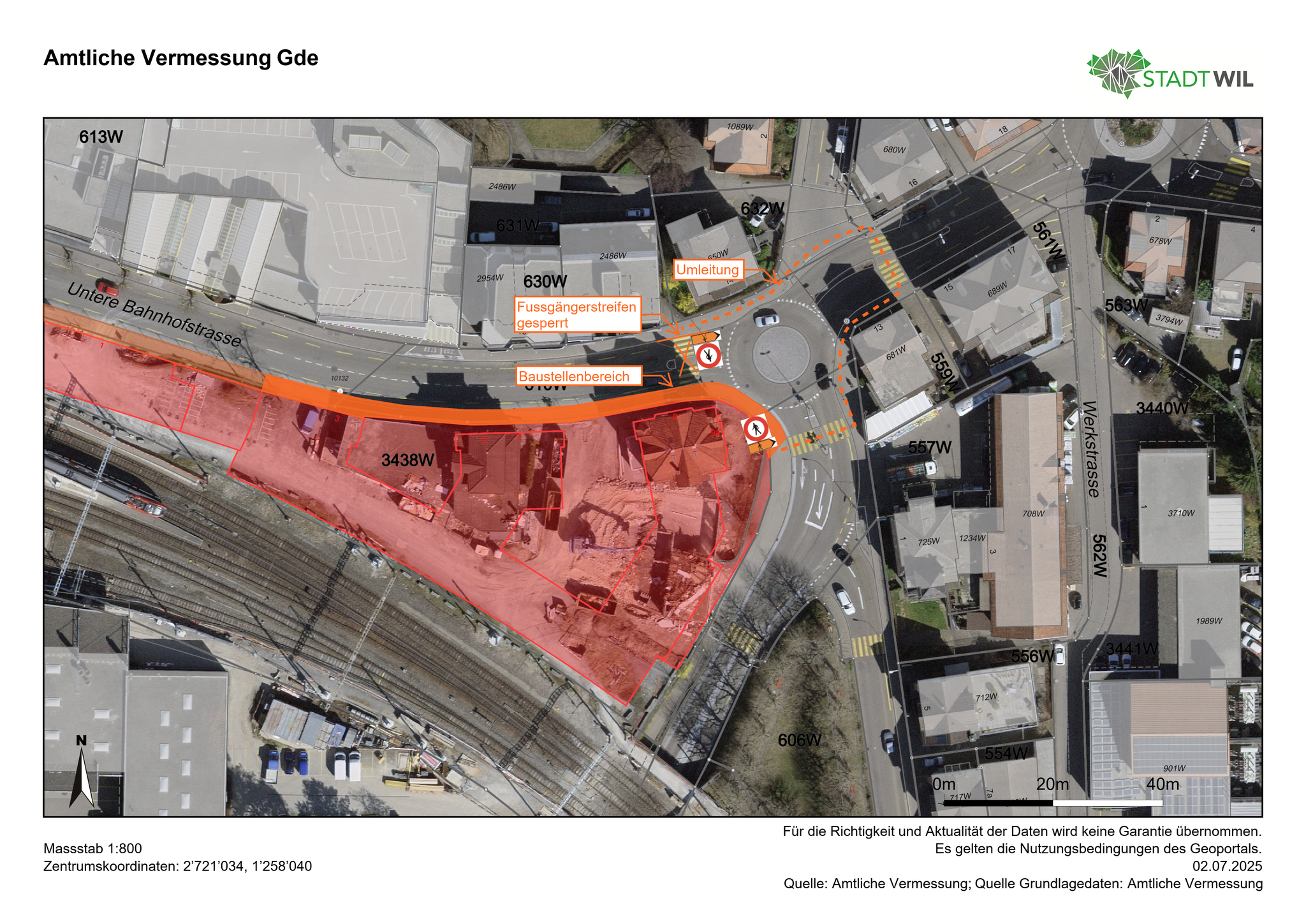 Im Rahmen der Umgebungsarbeiten zur Überbauung Untere Bahnhofstrasse 1-11 (PERRONIMO) finden Bauarbeiten am südlichen Strassenrand beim Kreisel Ilge statt. Zur Gewährleistung der Verkehrssicherheit ist der Fussgängerstreifen an der Unteren Bahnhofstrasse sowie ein Abschnitt des Trottoirs von Montag, 13. Oktober 2025, bis voraussichtlich Mittwoch, 22. Oktober 2025, nicht passierbar.