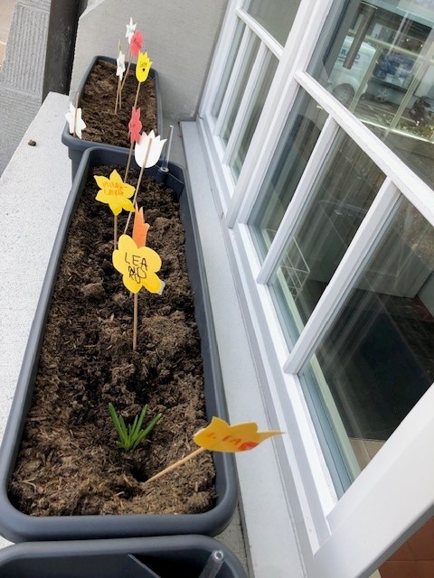 ▶ An der Eröffnung im Oktober haben die Kinder Blumenzwiebeln gesetzt. Jetzt spriessen die ersten Blätter und wir freuen uns schon auf die Blumen. Ausserdem gibt es in nächster Zeit viele tolle Angebote.