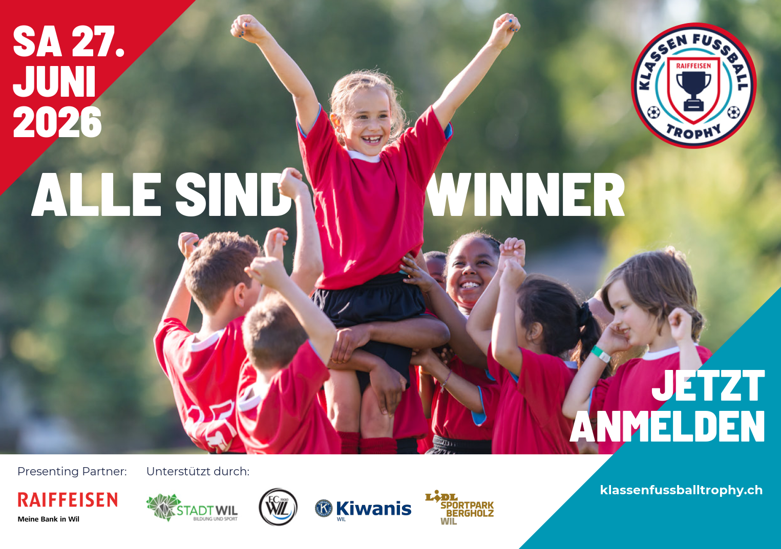 Wir laden alle Schulklassen der Stadt Wil zur Klassen Fussball Trophy ein! Wenn ihr Teamgeist habt, gerne kickt und mit Spass am Spiel dabei seid - dann macht mit und zeigt, was in eurer Klasse steckt!